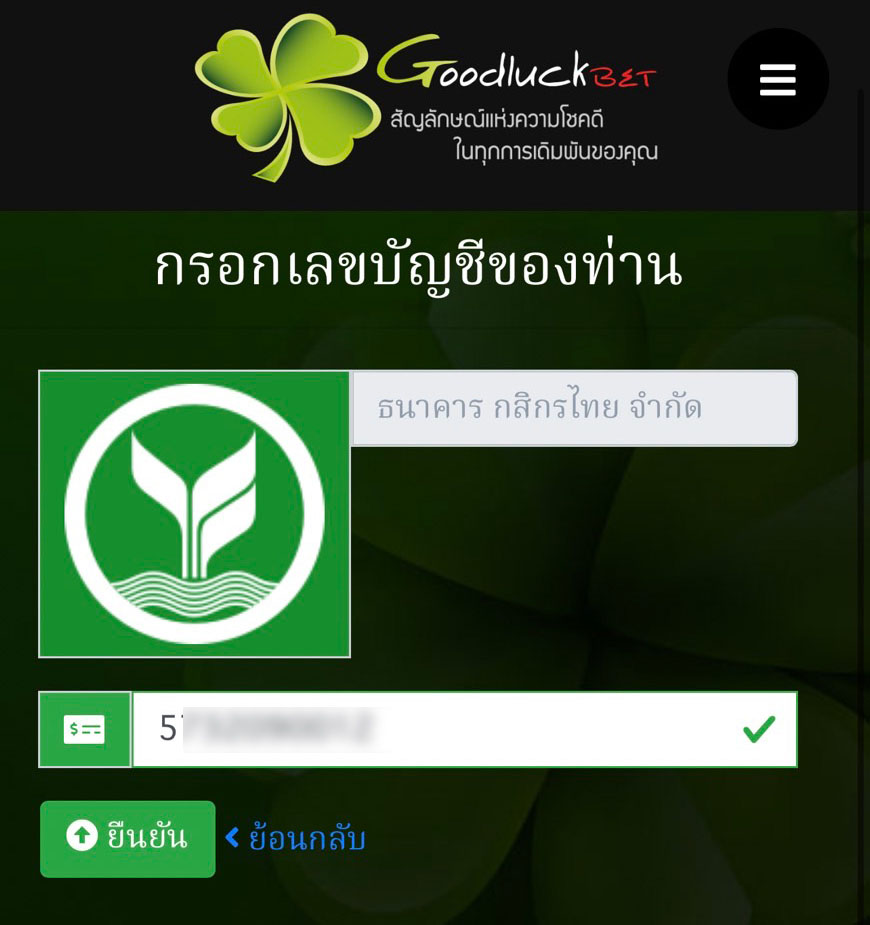 กรอกเลขบัญชี 10 หลักของท่านให้ถูกต้องแล้วกด "ยืนยัน"