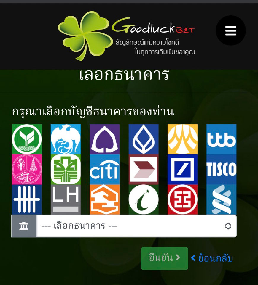 เลือกธนาคารของท่านโดยกดที่รูปแล้วกด "ยืนยัน"