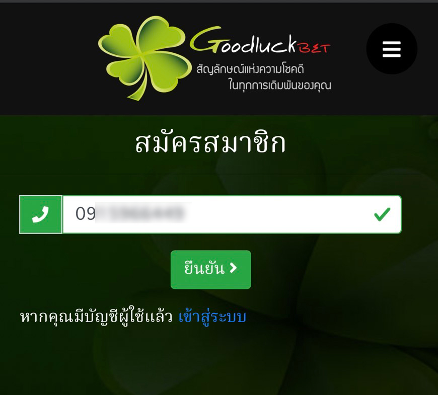 กรอกเบอร์โทรศัพท์มือถือของท่านแล้วกด "ยืนยัน"